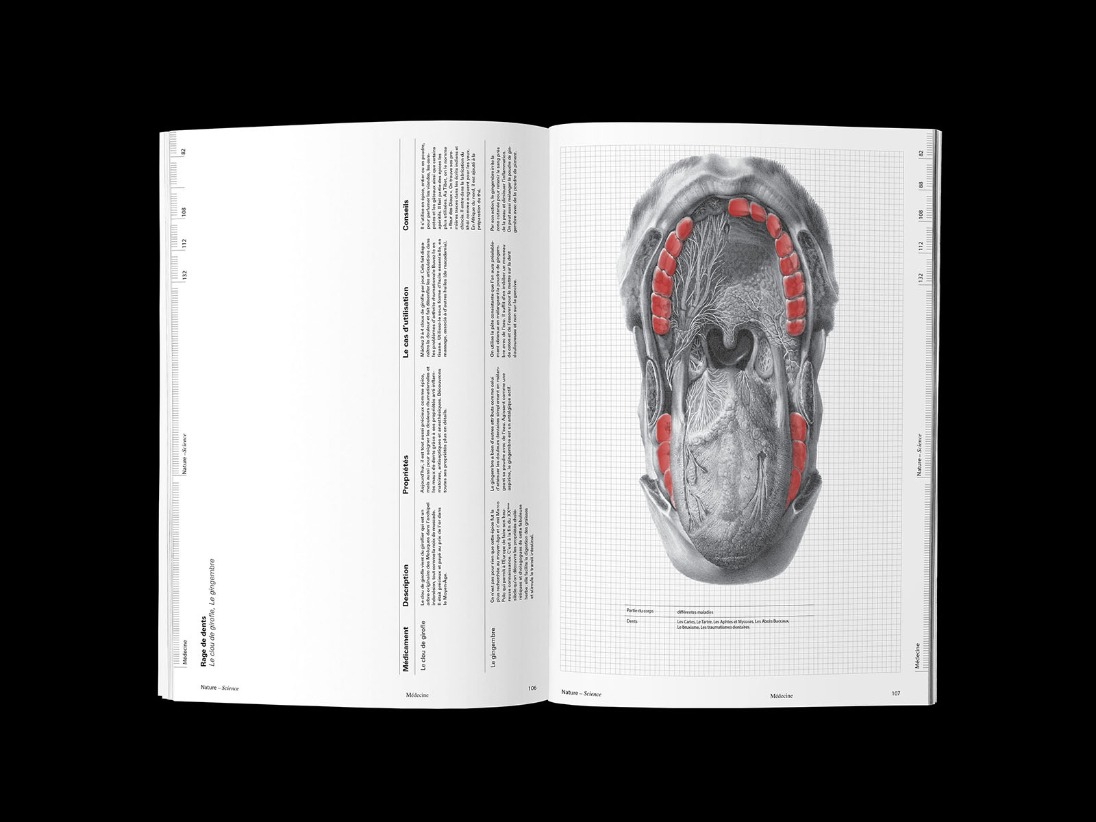 La végétation et son rôle dans notre quotidien sont les thèmes abordés dans mon ouvrage. J’ai ancré mon travail de diplôme autour d’éléments historiques (planches, estampes), de représentations visuelles et d’explications scientifiques. Mes recherches m’ont fait prendre conscience que la végétation est utilisée aussi bien dans nos médicaments que dans notre manière de vivre.