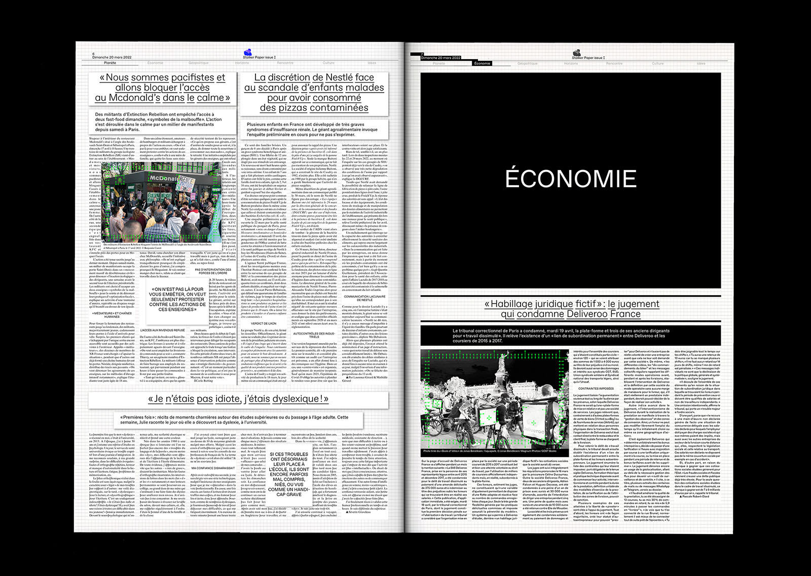 Avec ces deux matériaux, le print et le digital, j’ai essayé d’aménager les nouvelles de manière inédite et plus ludique, tout en explorant la frontière entre journaux et magazines.