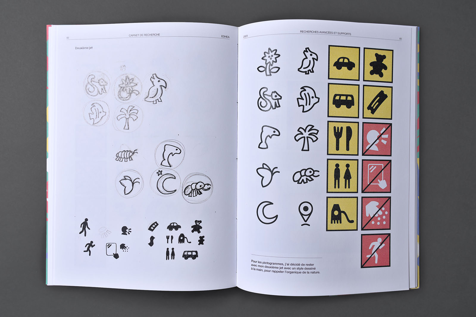 Elle se distingue par une diversité de formes graphiques composées de motifs et de courbes pour représenter la texture animale et la nature mouvementée. De plus, ces illustrations sont enrichies par la palette de couleurs, portant un message avec un ton positif.