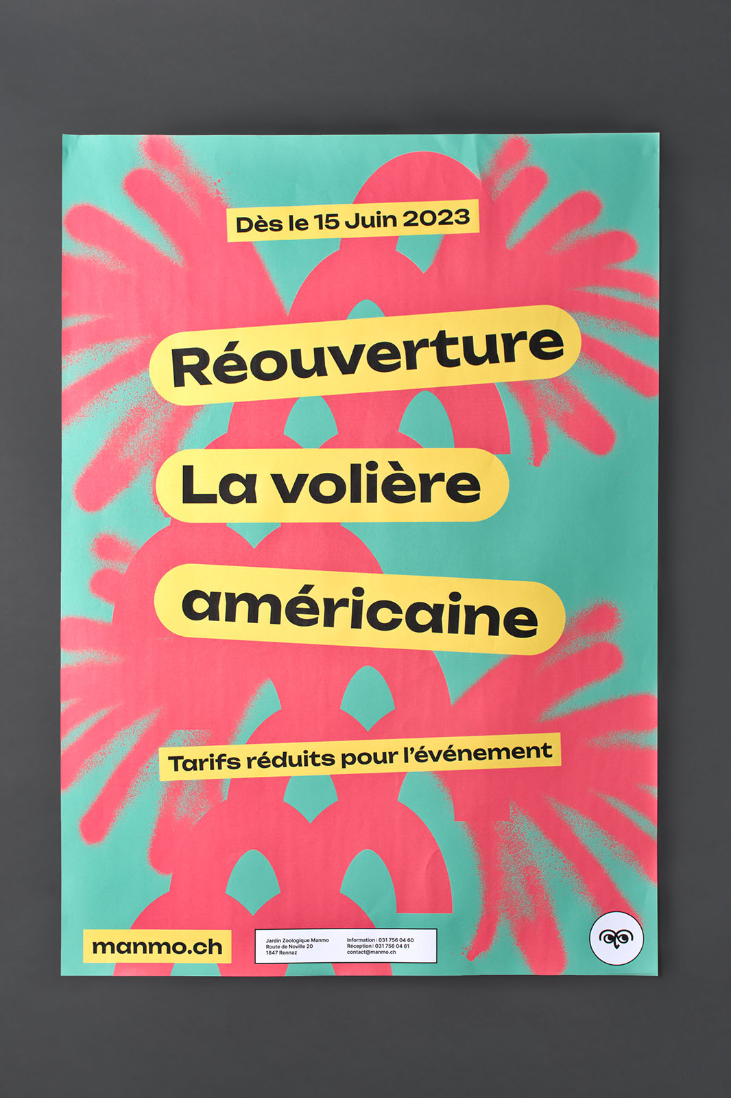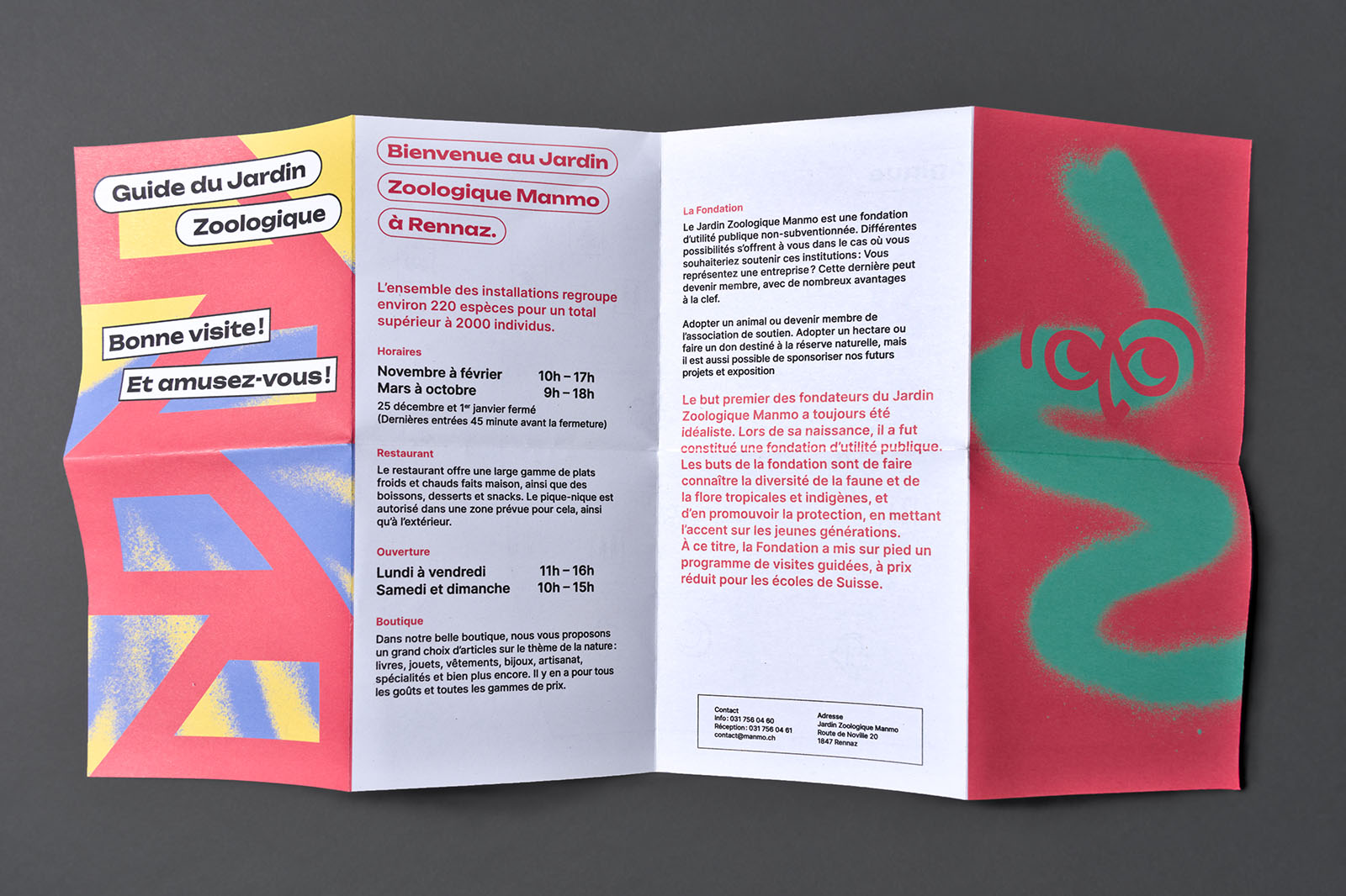 Cette identité visuelle pour un nouveau jardin zoologique fictif dénommé Manmo, situé aux abords de la ville de Villeneuve, a comme but de produire une empreinte forte dans l’imaginaire du public.