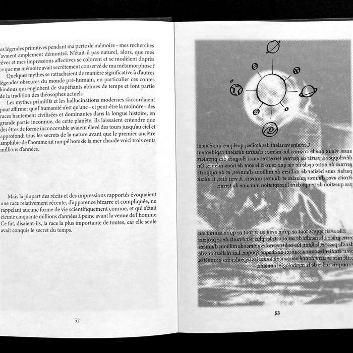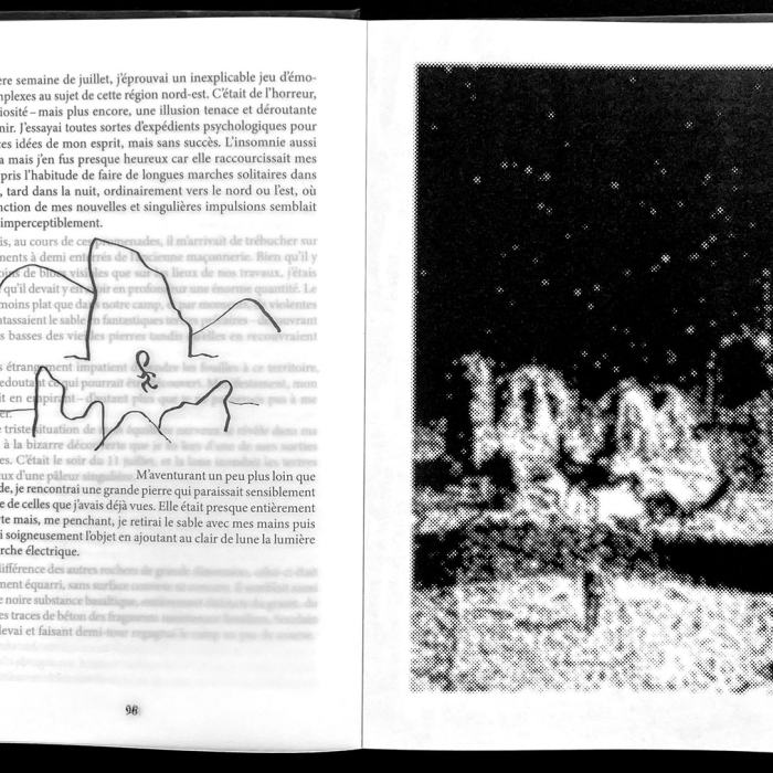 Ce travail revisite graphiquement la nouvelle éponyme de H.P. Lovecraft. Le protagoniste Nathaniel Wingate Peasley est soudain pris d’une amnésie étrange qui divise sa personnalité en deux et le fait voyager dans une ère qui n'est pas la sienne, détenant des secrets qu'aucun être humain n'aurait dû découvrir. Cette double personnalité est représentée par des pages calques venant compléter certaines parties du texte d’origine, agrémentées de hiéroglyphes curvilinéaires inspirés de l’écriture mésopotamienne et des textes hiéroglyphiques égyptiens. Des illustrations accompagnent la narration de la nouvelle, apportant ainsi plusieurs niveaux de lecture au livre.
