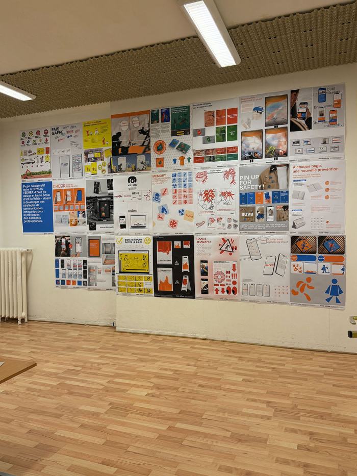 Durant leur dernier semestre, les élèves ont participé à une série de cinq workshops couvrant les principaux domaines du graphisme. Elles et ils ont mené à bien un projet en partenariat avec la Suva, axé sur la promotion de la sécurité au travail, ainsi qu’un projet éditorial, un projet d’identité visuelle, un projet de web design et un projet de design dans l’espace.