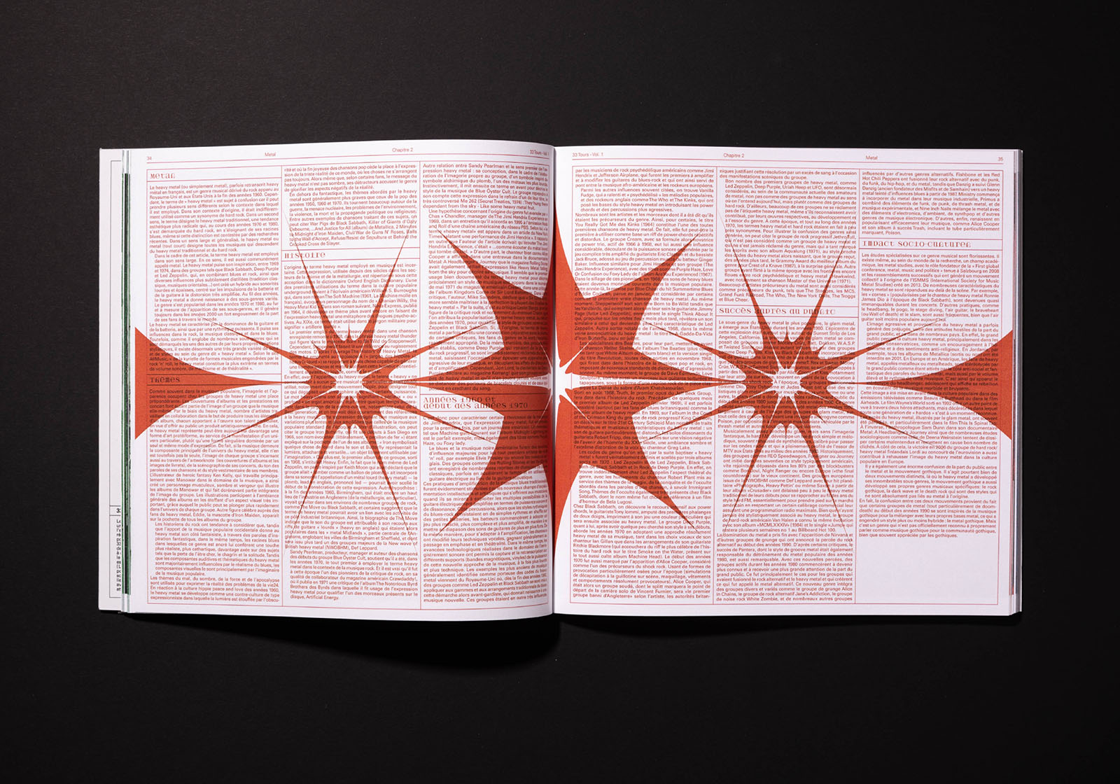 33 Tours, magazine au format carré, a pour thématique la musique. Il se divise en 5 chapitres qui abordent différents genres musicaux: la musique électronique, le métal, le jazz, le rock et le rap. Les chapitres se composent d’une description détaillée du genre musical suivie d’une sélection d’artistes populaires. Ils se distinguent par l’utilisation d’une seule couleur et d’une esthétique inspirée par des récurrences graphiques présentes sur les pochettes d’album. 33 Tours vous permet de découvrir ou redécouvrir de grands noms de la musique ainsi que l'origine et l’histoire de genres musicaux.