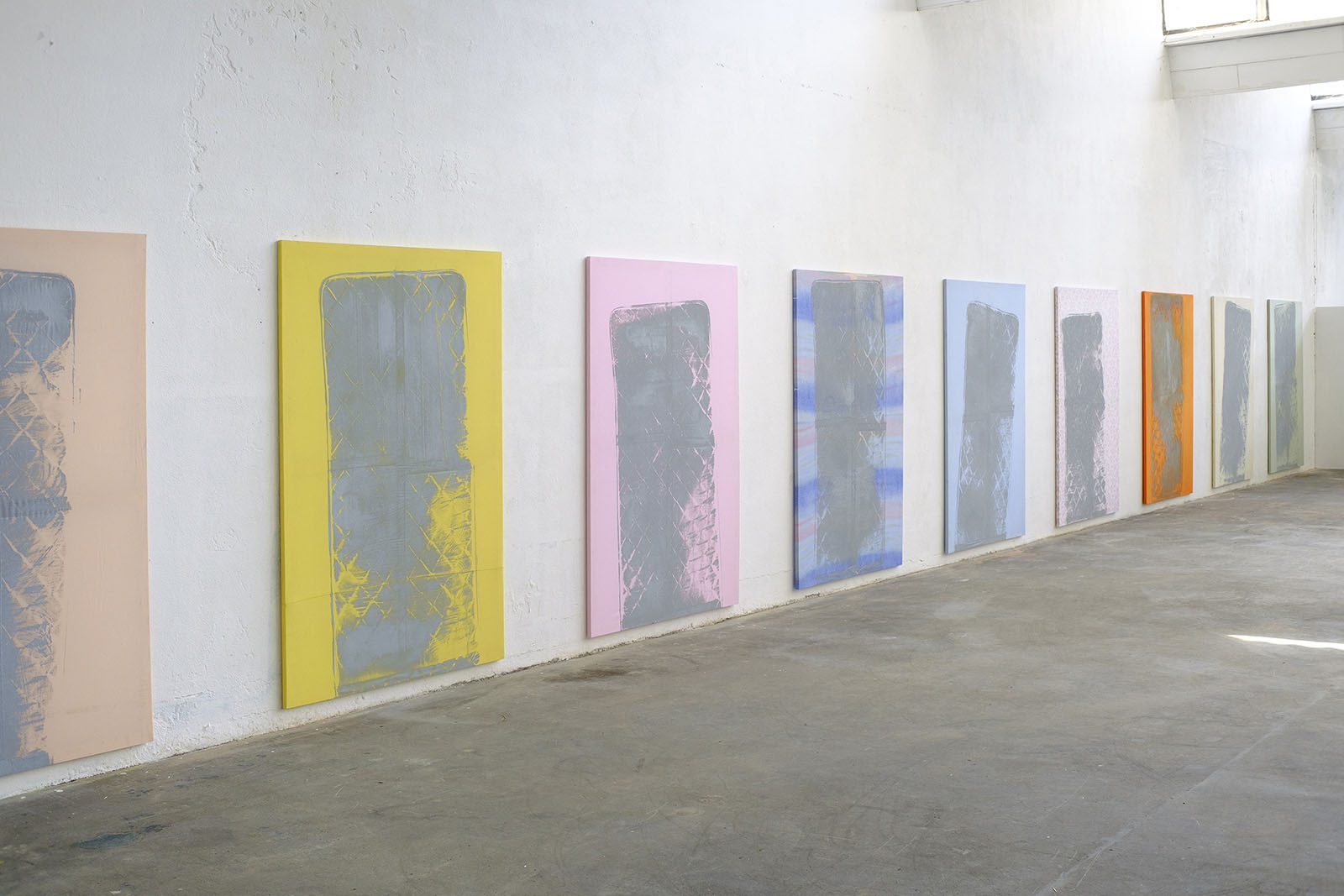 2021, Installation vidéo HD, son, boucle, 10 peintures (acrylique sur tissu, 135 x 205 cm)