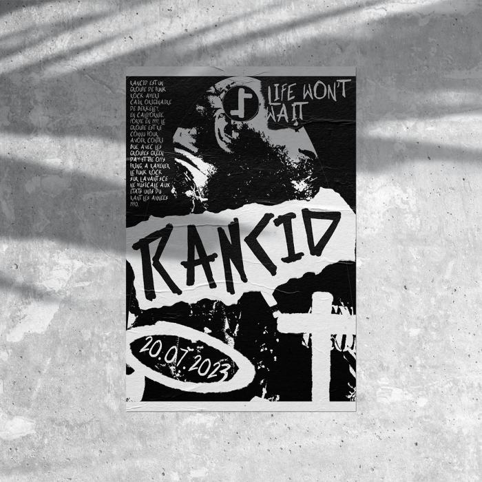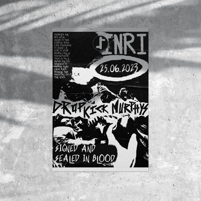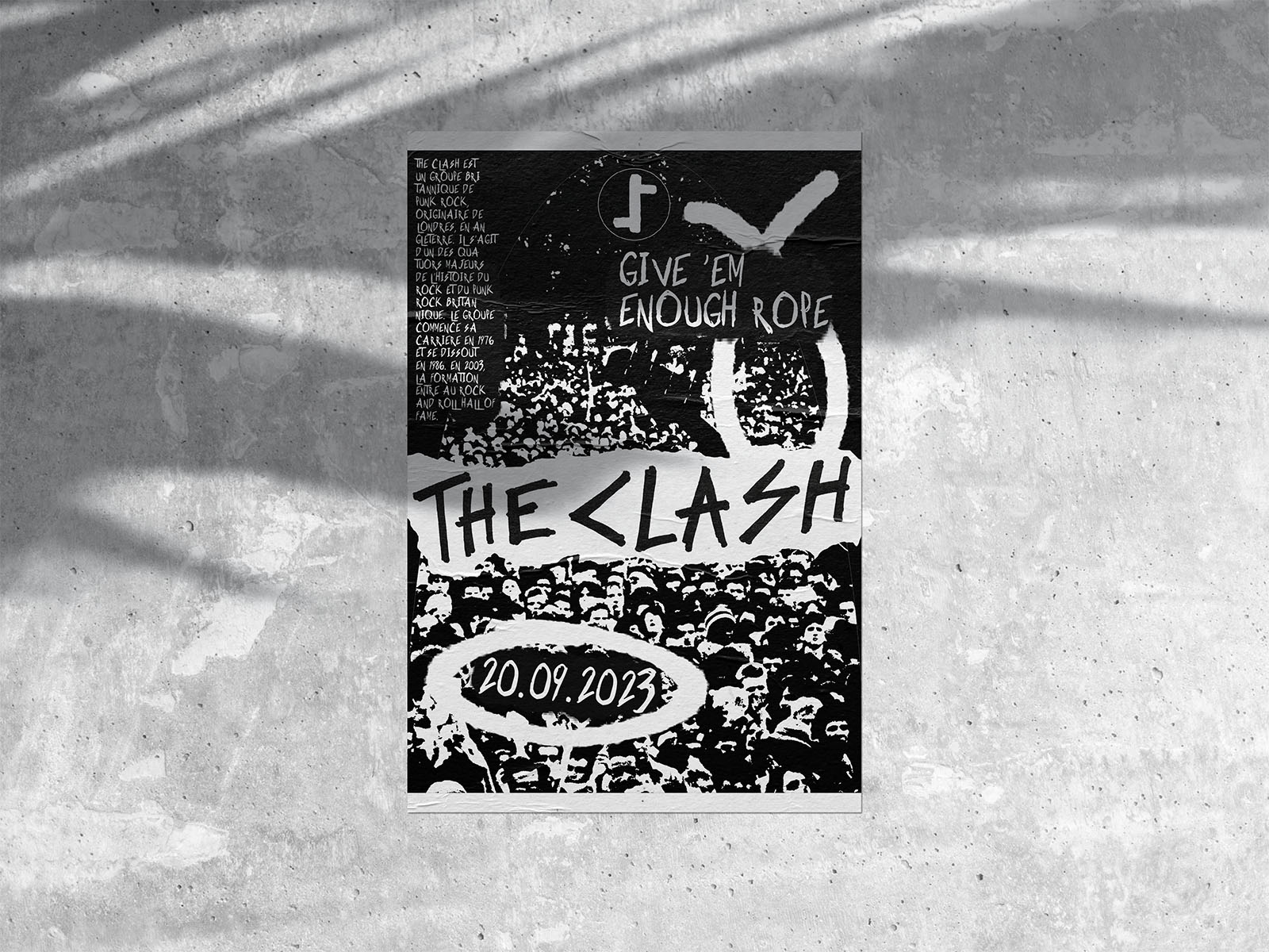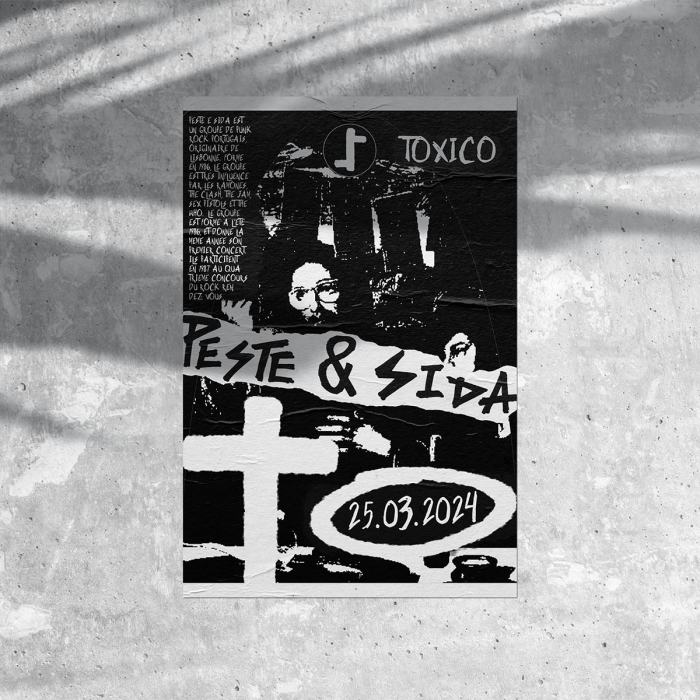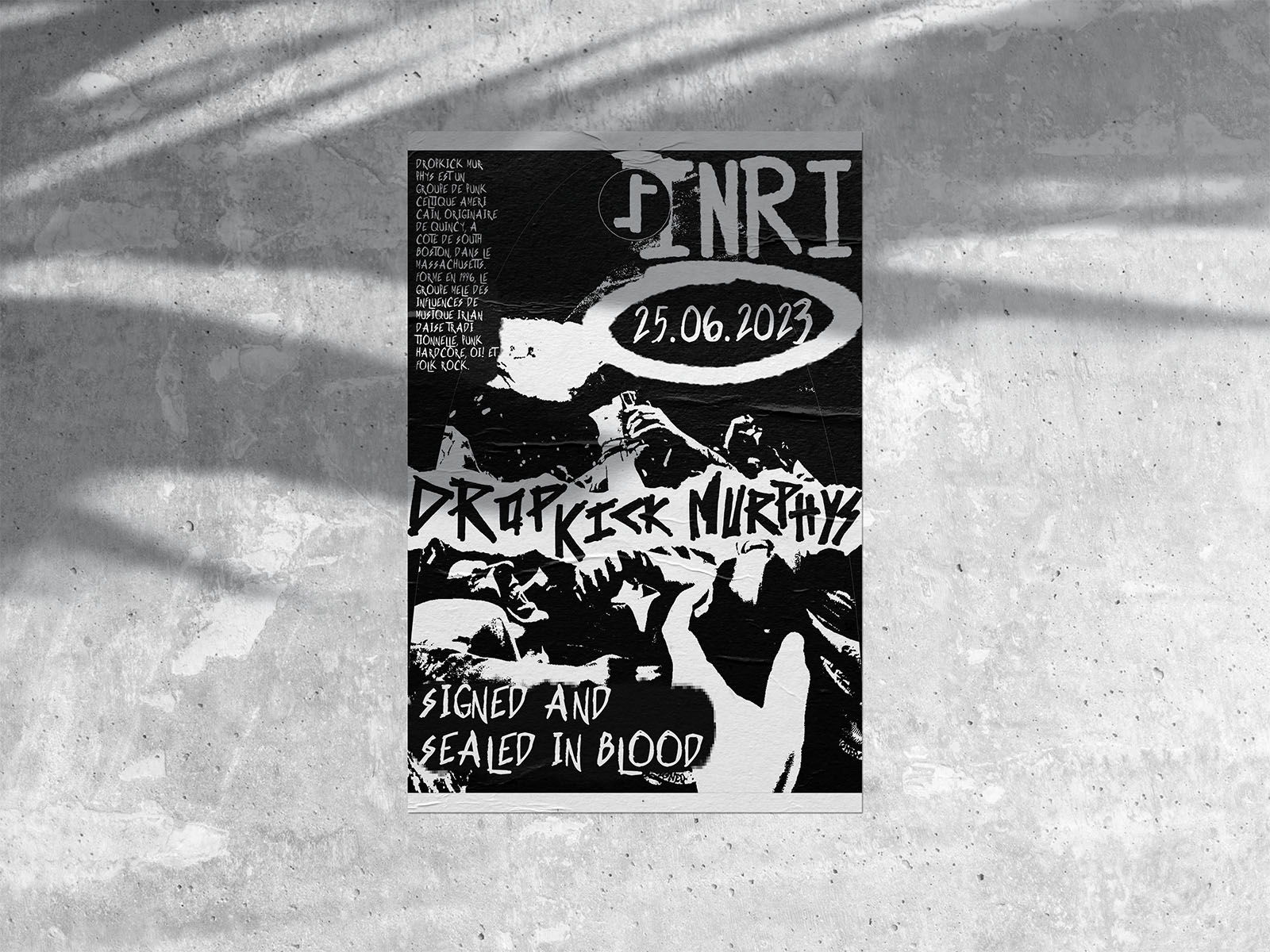 Pour ce projet, j’ai créé l’identité de Fallen Angel, un lieu de culture punk fictif prenant place dans une ancienne église abandonnée. J’ai donc décidé de mixer des éléments esthétiques religieux et des éléments esthétiques punk, en les faisant co-exister sans que cela ne soit dérangeant. Pour le côté religieux, j’ai repris la forme des vitraux, centrée sur les affiches, sur laquelle vient se construire la composition. J’ai également créé des éléments religieux que j’ai intégrés à mes affiches (croix, INRI, etc.). Le côté punk se ressent dans le traitement des images, dans la police d’écriture et dans les autres éléments trash et chaotiques.