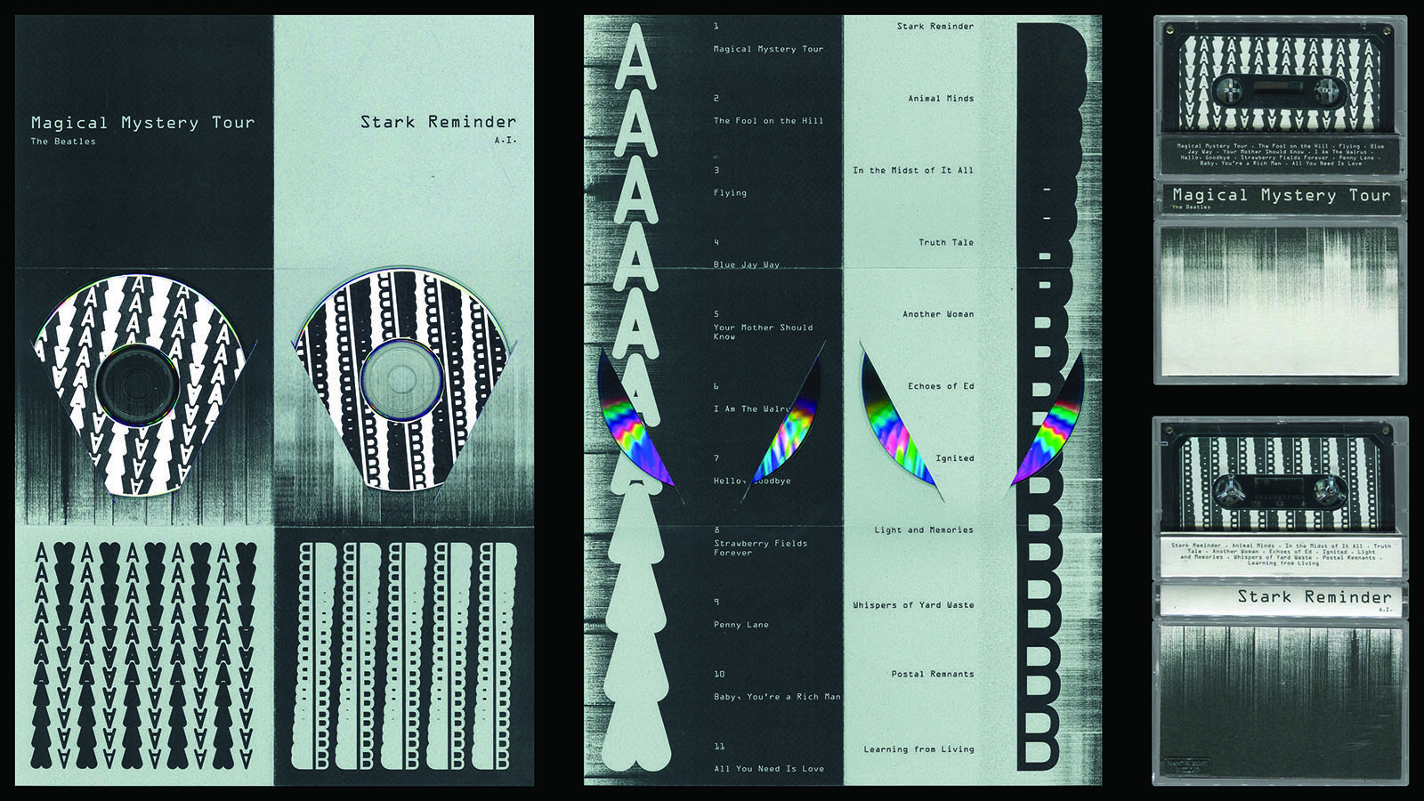 Ce travail part du constat que la plupart des oeuvres que l'on trouve en cherchant "art psychédélique" sur Internet sont générées par l'IA. Il passe par cinq étapes de corruptions auditives et textuelles à partir de l’album Magical Mystery Tour des Beatles pour mener à la création d'un nouvel album.