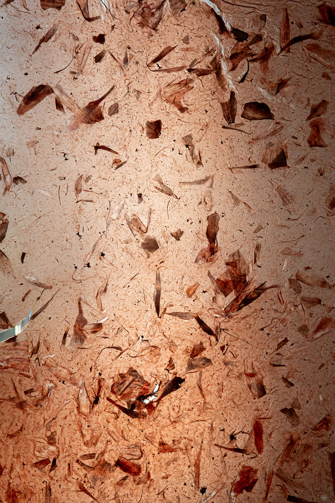 Installation de parois en biomatériaux d’oignons rouges, dimensions variables, espace de déambulation, 2025