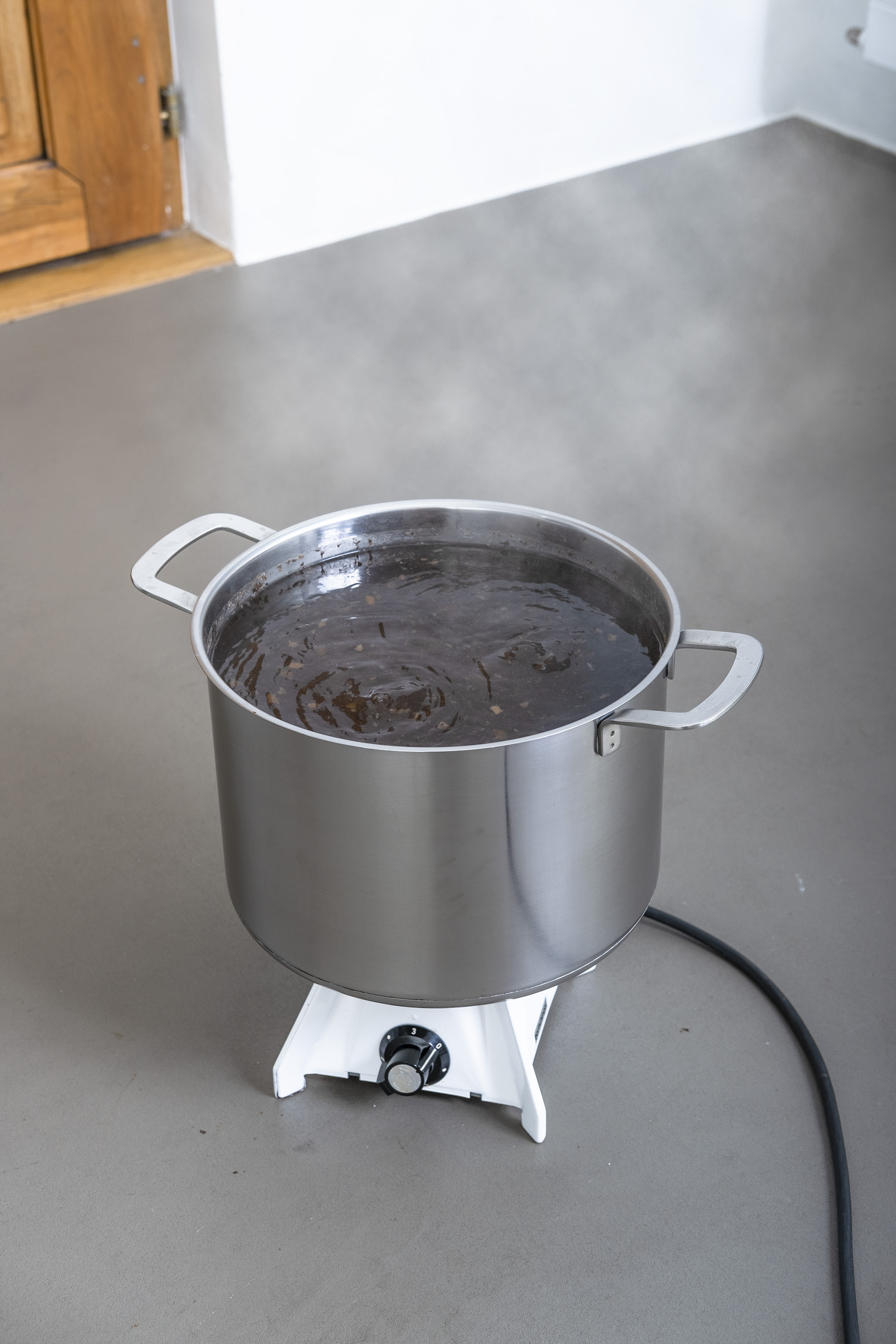 tirage photographique, 60x90 cm, casserole en acier inoxydable, réchaud électrique, eau, noomi bassorah (citron noir)