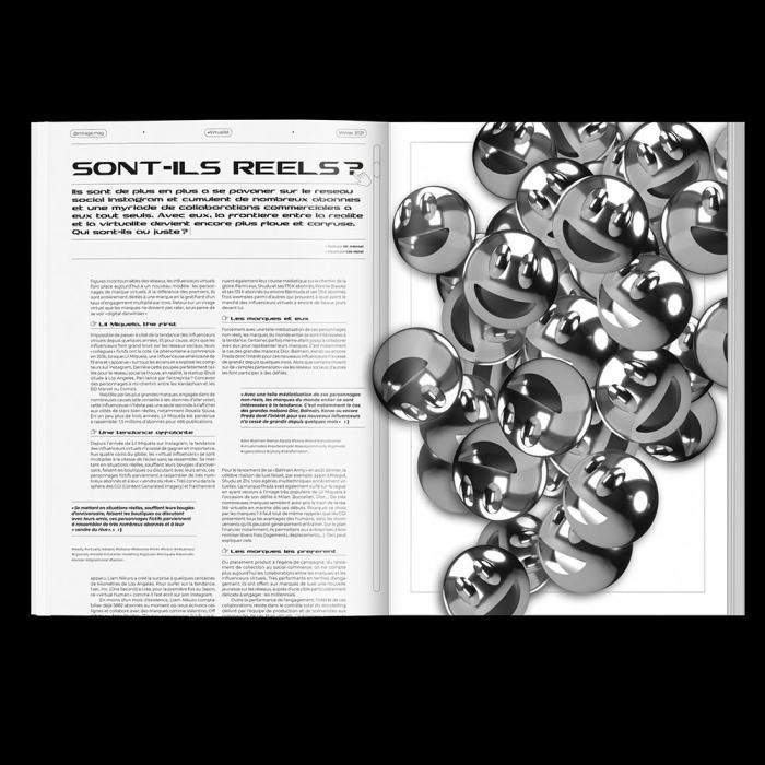 Avant de vous évader pour Mars, lisez le magazine fictif Mirage. Entre rêves, virtualité et réalité, Mirage s’intéresse à la conquête spatiale, à la mode de demain, aux réseaux sociaux, au progrès technologique et au mouvement du transhumanisme. Ce magazine vous transportera dans son univers onirique et futuriste avec des images 3D, des photographies personnelles ainsi qu’une mise en page inspirée du web. Mirage vous ouvrira les yeux sur l’illusion que l’avenir vous tend, tout en espérant vous offrir un moment d’évasion.