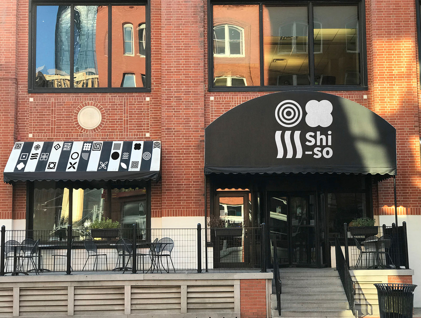 Shiso est un restaurant asiatique fictif basé à Lausanne. Il propose diverses recettes provenant de différents pays d’Asie. L’établissement permet un voyage dans plusieurs cultures en un seul repas grâce à un choix de goûts variés. Shiso met également à disposition un service take-away simple grâce à ses boîtes qui peuvent s’adapter aux plats. L’identité visuelle se base sur les différents motifs décoratifs que nous pouvons retrouver dans les pays d’Asie. Elle les adapte, les simplifie et les assemble côte à côte en jouant avec leur taille.