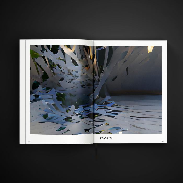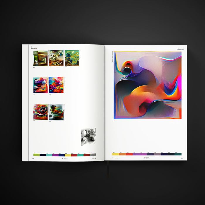 Ce lexique de l’abstraction a recours à des intelligences artificielles de manière à représenter ces concepts humains. L’esthétique du livre révèle une certaine discipline dans sa typographie et son gabarit, contrastant avec l’aspect chaotique de certaines images. Le lexique illustre l’interprétation visuelle des concepts humains par la technologie.