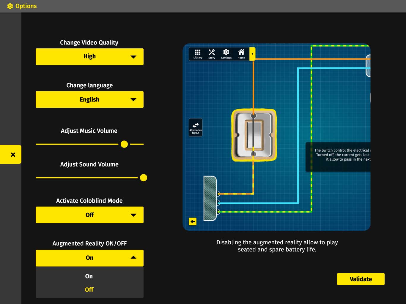 L’objectif de cette application est d’offrir aux jeunes enfants une nouvelle perspective éducative sur un sujet complexe. Elle intègre des séquences interactives leur permettant d’expérimenter chaque concept, de l’électromagnétisme de base à la réalisation de circuits électriques grâce à la réalité augmentée, en passant par les différents types de production d’énergie.