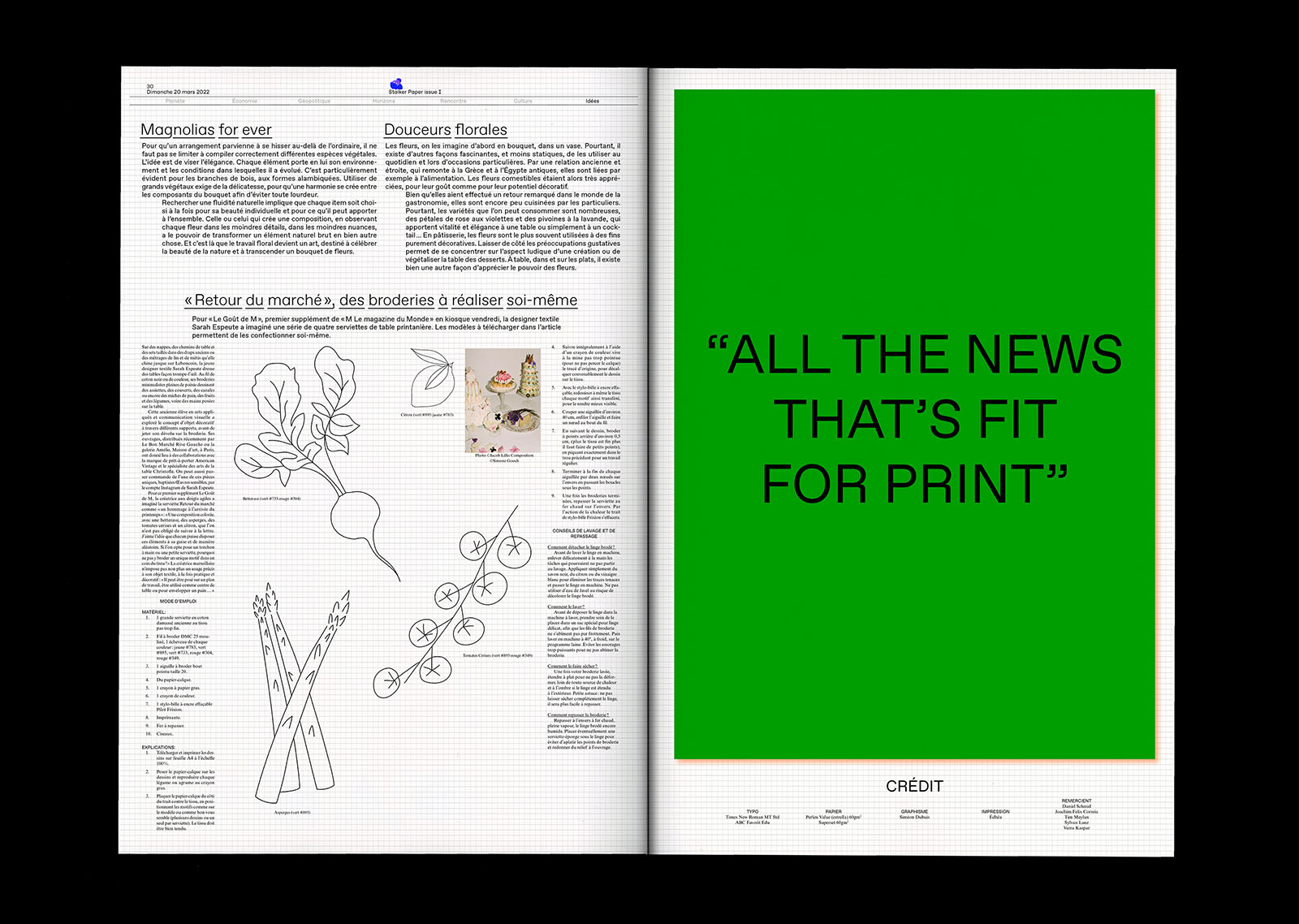 Avec ces deux matériaux, le print et le digital, j’ai essayé d’aménager les nouvelles de manière inédite et plus ludique, tout en explorant la frontière entre journaux et magazines.