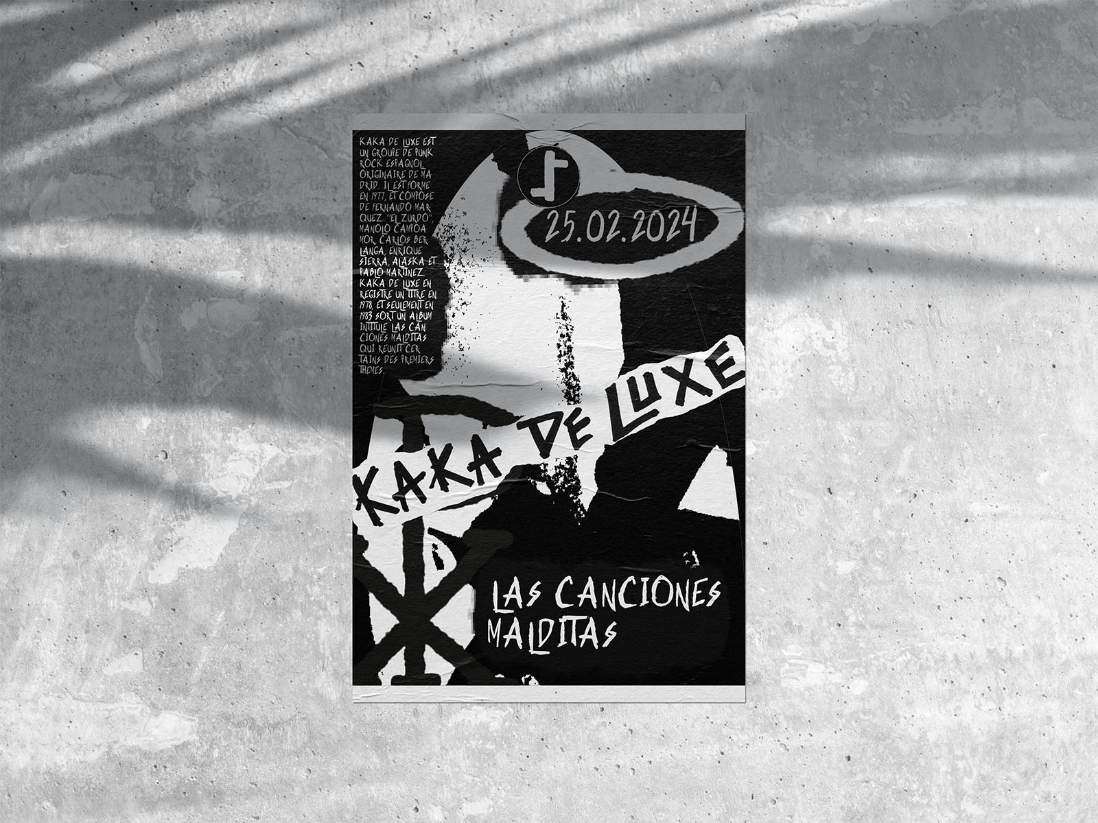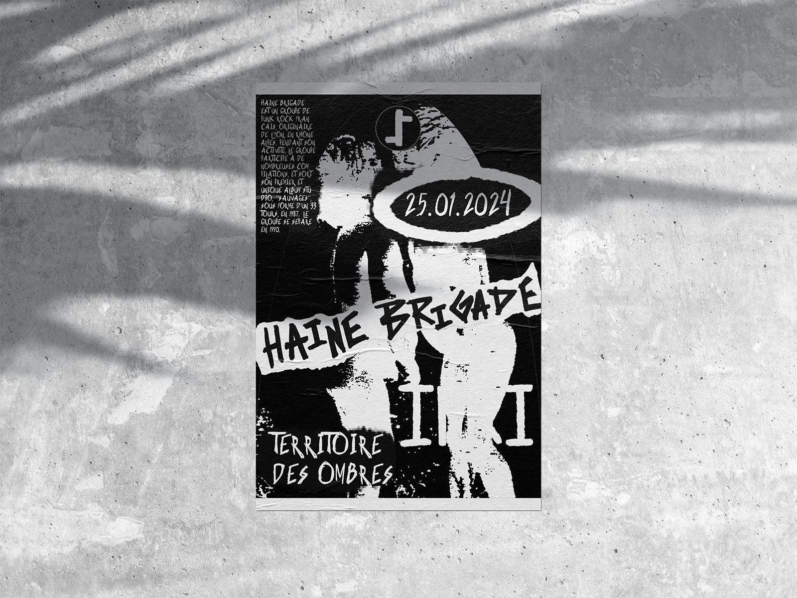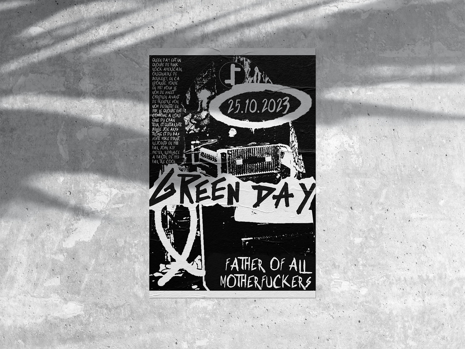 Pour ce projet, j’ai créé l’identité de Fallen Angel, un lieu de culture punk fictif prenant place dans une ancienne église abandonnée. J’ai donc décidé de mixer des éléments esthétiques religieux et des éléments esthétiques punk, en les faisant co-exister sans que cela ne soit dérangeant. Pour le côté religieux, j’ai repris la forme des vitraux, centrée sur les affiches, sur laquelle vient se construire la composition. J’ai également créé des éléments religieux que j’ai intégrés à mes affiches (croix, INRI, etc.). Le côté punk se ressent dans le traitement des images, dans la police d’écriture et dans les autres éléments trash et chaotiques.