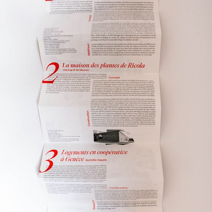 Archi’Eco est un magazine d'architecture pas comme les autres. Trois dépliants sont à votre disposition pour découvrir le monde de la construction. Ils présentent exclusivement des architectures écologiques dans le but de faire découvrir au grand public d'autres manières de construire et de montrer que, dans de plus en plus de pays, le secteur de la construction fournit des efforts pour la planète. Ce format spécial permet une meilleure accessibilité que les magazines d'architecture classiques qui, parfois, ne sont pas facilement compréhensibles pour un public non initié. Une série de trois affiches faites à la main accompagne les dépliants.