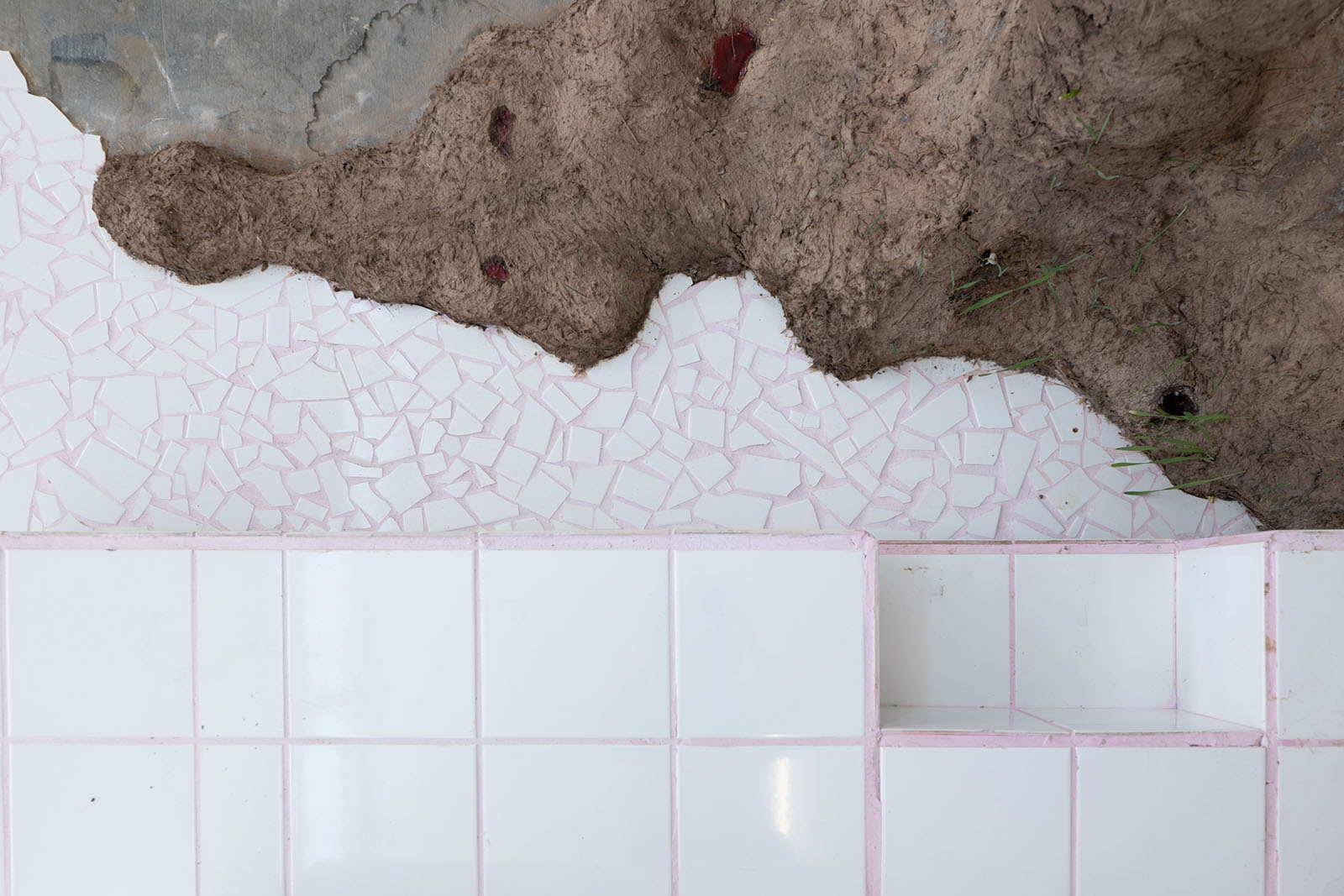 2021, installation, carreaux céramiques, terre crue, gelée