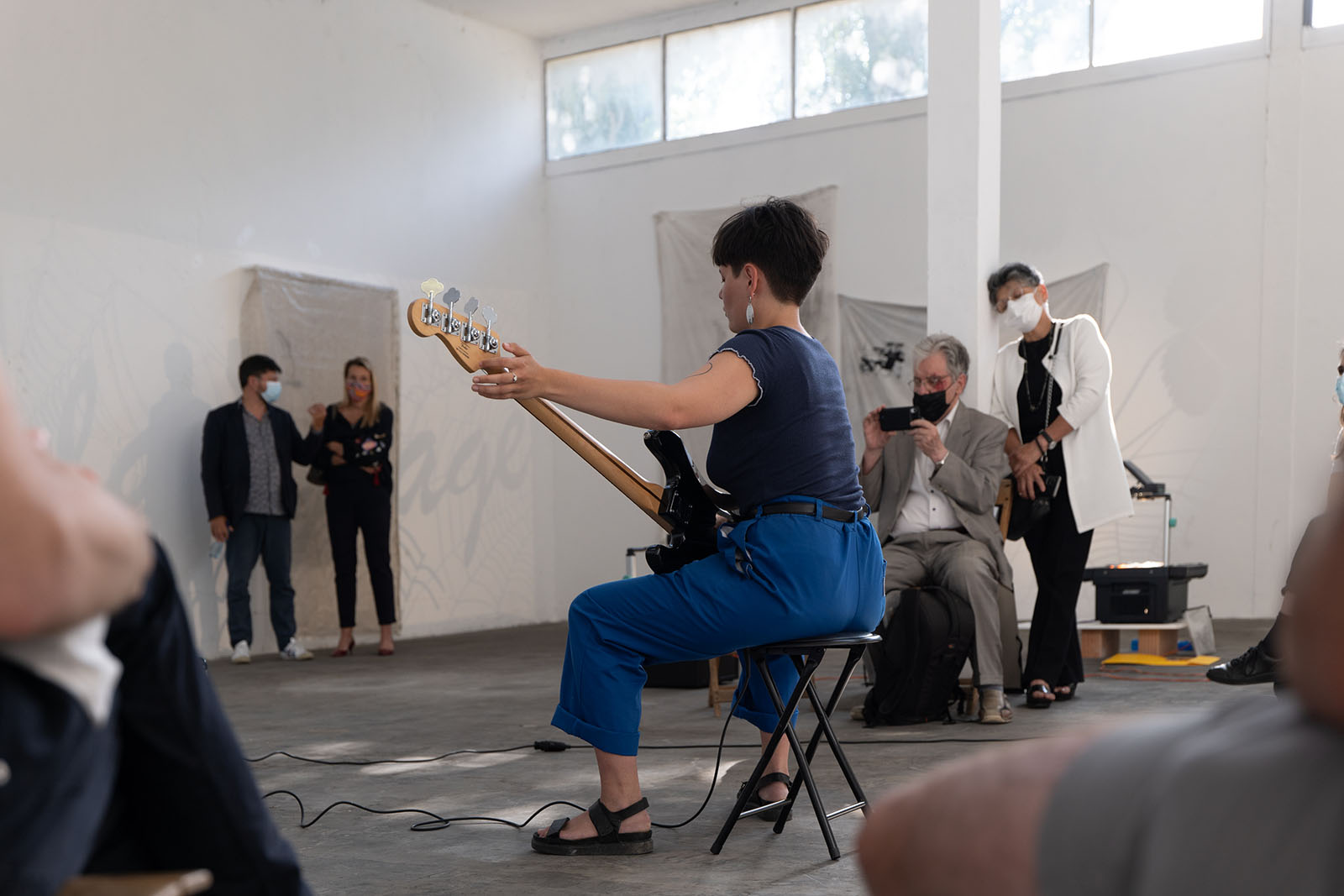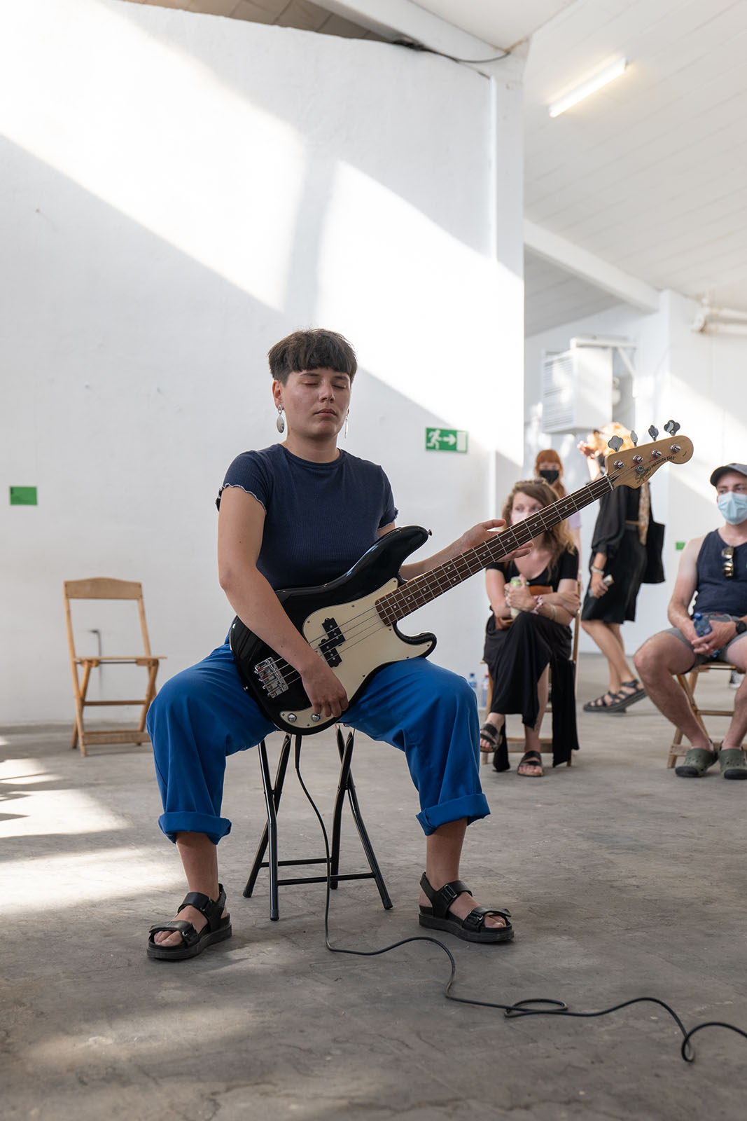 Cette composition appartient à une série d’expérimentations soutenant une recherche sonore et performative. Au travers d’un micromouvement, le son est créé ici par un geste subtil et répétitif. Il est pratiqué comme une action de laquelle découlent des vibrations circulant du manche de la basse jusqu’à accéder aux corps des personnes présentes.