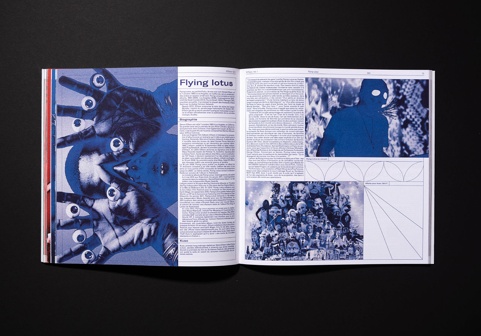 33 Tours, magazine au format carré, a pour thématique la musique. Il se divise en 5 chapitres qui abordent différents genres musicaux: la musique électronique, le métal, le jazz, le rock et le rap. Les chapitres se composent d’une description détaillée du genre musical suivie d’une sélection d’artistes populaires. Ils se distinguent par l’utilisation d’une seule couleur et d’une esthétique inspirée par des récurrences graphiques présentes sur les pochettes d’album. 33 Tours vous permet de découvrir ou redécouvrir de grands noms de la musique ainsi que l'origine et l’histoire de genres musicaux.