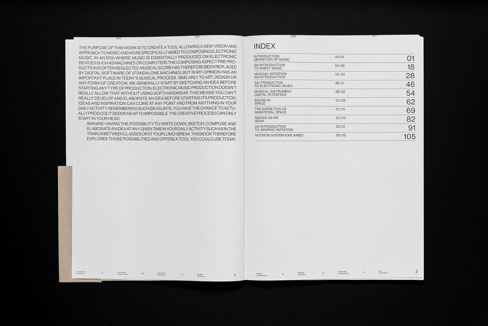 Le but de cette oeuvre est de créer un outil qui aborde le thème de la musique électronique sous un nouvel angle. Dans une époque où la musique est essentiellement produite sur des appareils électroniques tels que des machines ou des ordinateurs, l’aspect de composition préproduction est souvent négligé. La partition musicale a donc été remplacée par le logiciel numérique ou analogue.