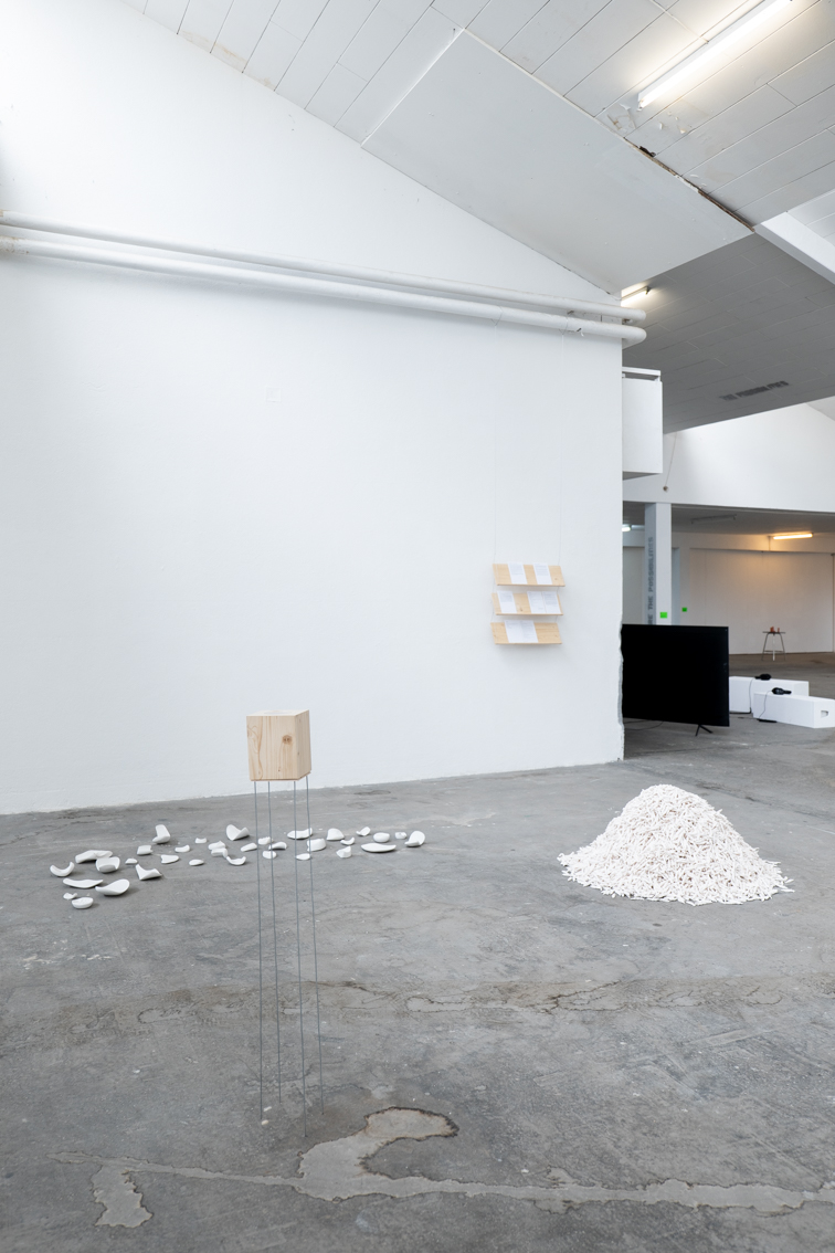 Installation, porcelaine, plâtre, bois, métal, papier (3 × 5 × 3 m), 2022