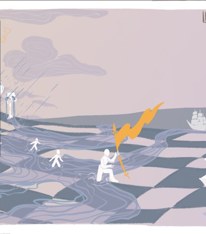 Sur la vitrine de Payot Sion, Doman Shekani présente dès la fin du mois de janvier Salmigondis, scène de nos chaotiques chemins initiatiques. Artiste et illustratrice engagée dans la scène culturelle valaisanne, Doman Shekani a obtenu en 2022 un Bachelor en Arts visuels à l’EDHEA. A cette occasion, elle a été choisie pour une résidence au musée d’art du Valais, où elle nourrit actuellement sa pratique. Pour ce projet «Art au centre» c’est à travers le dessin, son moyen d’expression de prédilection, qu’elle invite les passantes et passants à se perdre dans le tableau, puis à contribuer à ce méli-mélo d’événements.