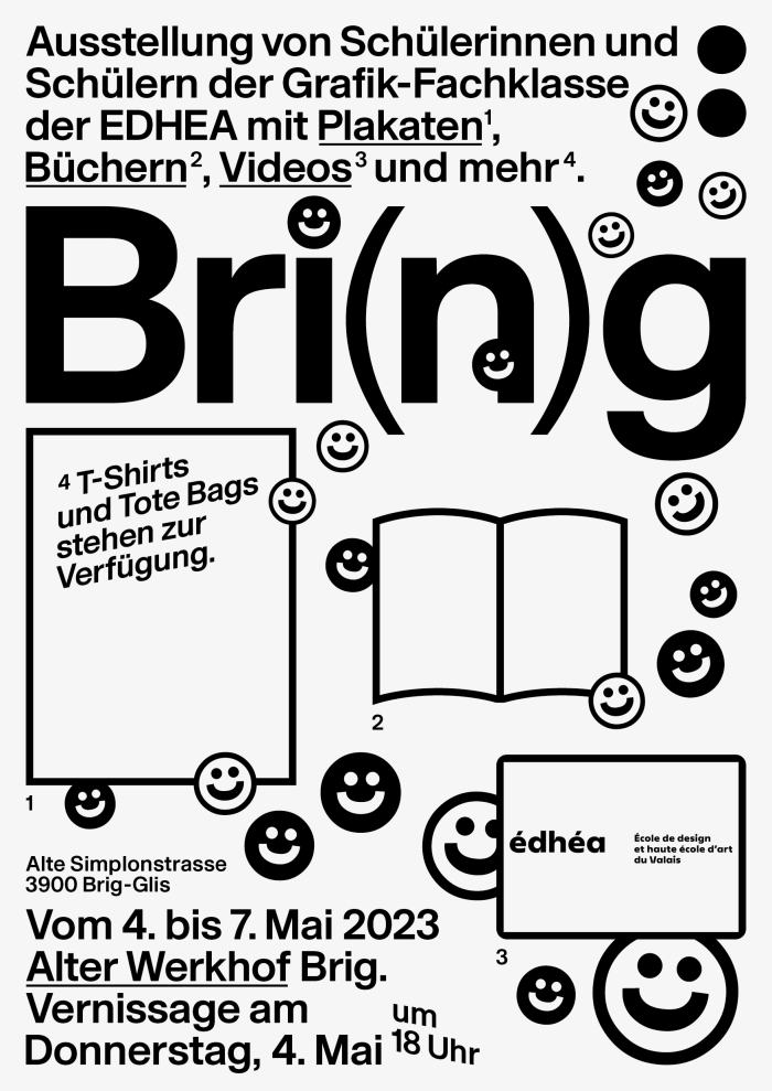 Les élèves de graphisme de l'EDHEA exposent à l'espace culturel Alter Werkhof à Brigue. Pendant quatre jours, on peut y voir des travaux sur les thèmes «archives» et «identité». Le vernissage aura lieu le jeudi 4 mai à partir de 18h.