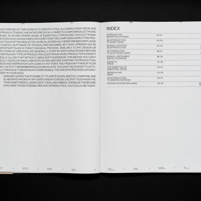 Le but de cette oeuvre est de créer un outil qui aborde le thème de la musique électronique sous un nouvel angle. Dans une époque où la musique est essentiellement produite sur des appareils électroniques tels que des machines ou des ordinateurs, l’aspect de composition préproduction est souvent négligé. La partition musicale a donc été remplacée par le logiciel numérique ou analogue.